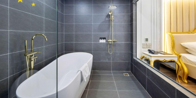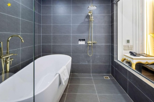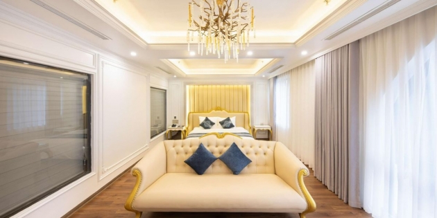 Phong cách tân cổ điển được tiết chế vừa đủ, nhấn vào độ rộng thoáng, ánh sáng tự nhiên và chất liệu cao cấp. Chăn ga êm mịn, đệm đàn hồi hỗ trợ giấc ngủ, góc bàn trà thư giãn và phòng tắm sáng sạch… tất cả phối hợp để tạo nên không gian nghỉ cân bằng giữa thẩm mỹ và công năng.