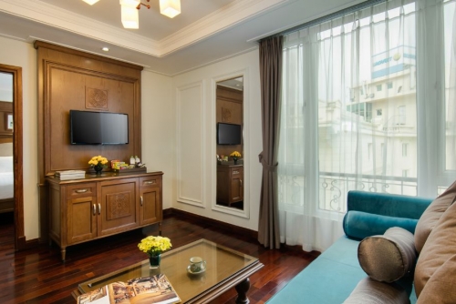 - Phòng suite sang trọng: Thiết kế tinh tế, không gian lớn, thích hợp cho khách gia đình hoặc khách công tác cần chỗ làm việc riêng.