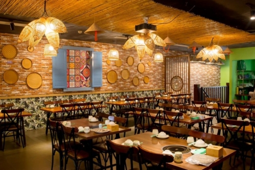 Bước chân vào Nhà hàng Phương Nam, thực khách ngay lập tức cảm nhận được bầu không khí ấm áp, thân thiện. Nội thất sử dụng nhiều tre, gỗ, nứa kết hợp ánh sáng vàng nhẹ, tái hiện rõ nét phong cách miền Tây.