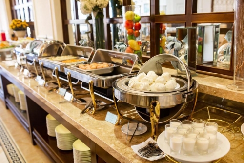 Bữa sáng buffet tại nhà hàng tầng trệt được khách lưu trú đánh giá khá tốt. Thực đơn không quá phong phú nhưng thay đổi mỗi ngày, có cả món Việt lẫn món Âu nhẹ. Món phở, mì Quảng và bánh mì trứng được nhiều người khen ngon và hợp vị.