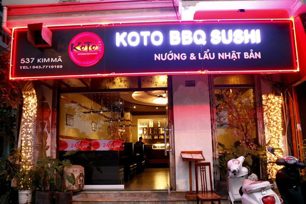 Nhắc đến văn hóa ẩm thực Nhật Bản, người ta phải nhắc đến một nền văn hóa truyền thống với những món ăn được ví như những kiệt tác trang trí kì công, đầy đủ sắc màu và sự tinh tế khó có thể diễn tả bằng lời. Tọa lạc tại số 537 Kim Mã, Ba Đình, Hà Nội, nhà hàng Koto BBQ Sushi chuyên phục vụ các món nướng & lẩu mang phong cách Nhật Bản.