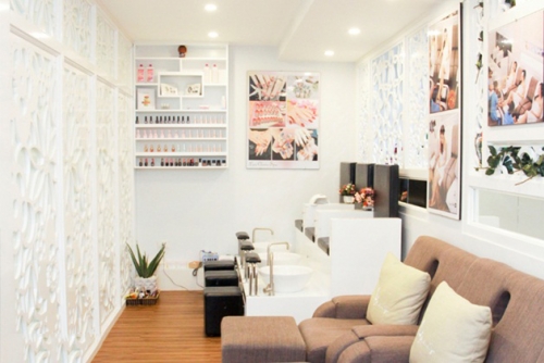 Khu vực tiếp khách trang trí xinh xắn, với hoa tươi và nhiều bức tranh sinh động. Khu vực làm đẹp riêng biệt, các bàn spa êm ái, ngăn cách bởi tấm rèm buông mềm mại, tạo sự thoải mái, dễ chịu cho khách hàng khi trải nghiệm dịch vụ.