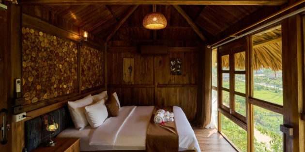 Nằm trên một triền núi thoáng đãng, Mật Retreat sở hữu tầm nhìn ôm trọn cả thung lũng, những dãy núi xanh ngút ngàn và biển mây trắng xóa mỗi sáng. Khi chiều buông, ánh hoàng hôn trải dài khắp bầu trời, biến nơi đây thành bức tranh thiên nhiên sống động và lãng mạn. Không gian được thiết kế hài hòa giữa kiến trúc hiện đại và nét mộc mạc của gỗ, đá, tre… Từ ban công phòng nghỉ, bạn có thể nhâm nhi tách trà nóng, ngắm mây trôi lững lờ và cảm nhận sự bình yên tuyệt đối.