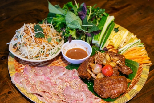 Điểm ấn tượng đầu tiên là thực đơn phong phú với hơn 100 món ăn Việt truyền thống. Từ những món dân dã như xôi ruốc, cà muối, nộm hoa chuối, bún mọc cho đến các mẹt đa dạng với gà, bò, ốc… đều được chế biến kỹ lưỡng, hương vị vừa quen thuộc vừa có những điểm nhấn riêng.