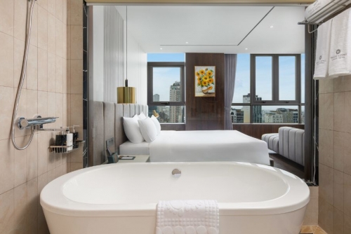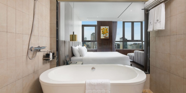 Khách sạn được thiết kế tinh tế, hòa quyện giữa sự hiện đại và cảm hứng từ thiên nhiên. Mỗi góc nhỏ đều được chăm chút tỉ mỉ, mang lại cho bạn không chỉ là một nơi lưu trú, mà là một hành trình tận hưởng trọn vẹn.