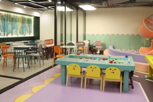 Trong khi các bé vui chơi, ba mẹ có thể tận hưởng không gian cafe hiện đại, thoáng đãng, thưởng thức đồ uống ngon miệng và thư giãn.