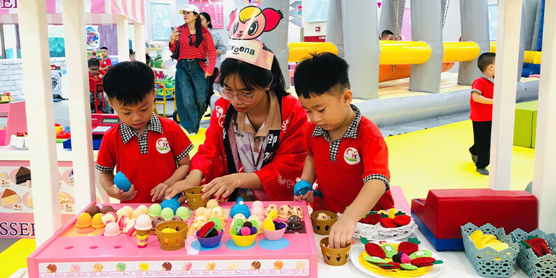 Một trong những điểm nổi bật không thể bỏ qua của Kid's Box chính là chuỗi trò chơi nhập vai như bác sĩ, lính cứu hỏa, tiệm bán hàng… giúp bé hóa thân và học hỏi kỹ năng mềm thiết yếu. Bên cạnh đó, góc sáng tạo mở rộng cho bé tự do vẽ tranh, làm đồ thủ công, khơi gợi trí tưởng tượng không biên giới.