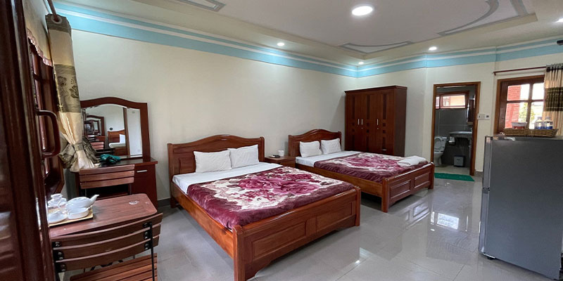 Phòng Family tại Khu du lịch Đamb'ri được thiết kế đặc biệt, phù hợp cho các gia đình muốn trải nghiệm kỳ nghỉ trọn vẹn. Không gian rộng rãi, nội thất tiện nghi cơ bản, Wifi miễn phí giúp mọi thành viên thư giãn và kết nối dễ dàng.