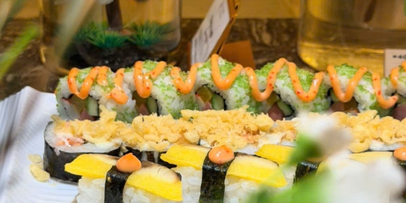 Điểm nhấn không thể bỏ qua tại buffet Lantine là quầy hải sản tươi sống hấp dẫn, nơi hội tụ những sản vật tinh tuý như hàu Phú Quốc, tôm sú Cà Mau, cua biển Nha Trang, cá hồi Na Uy - tất cả đều được chế biến tinh tế hoặc giữ nguyên vẹn vị ngọt tự nhiên với sashimi mát lạnh.