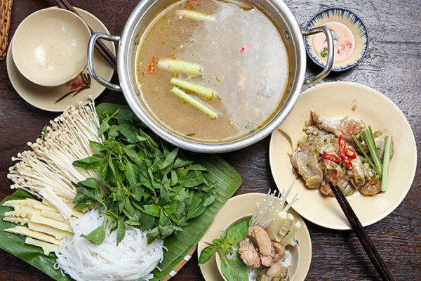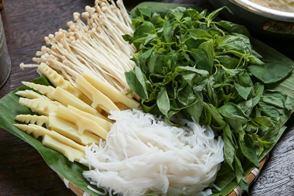 Combo 01: Lẩu gà lá é cho 02 người, bao gồm: 1/3 con gà + bún + măng + lá é + nước lẩu ăn kèm.