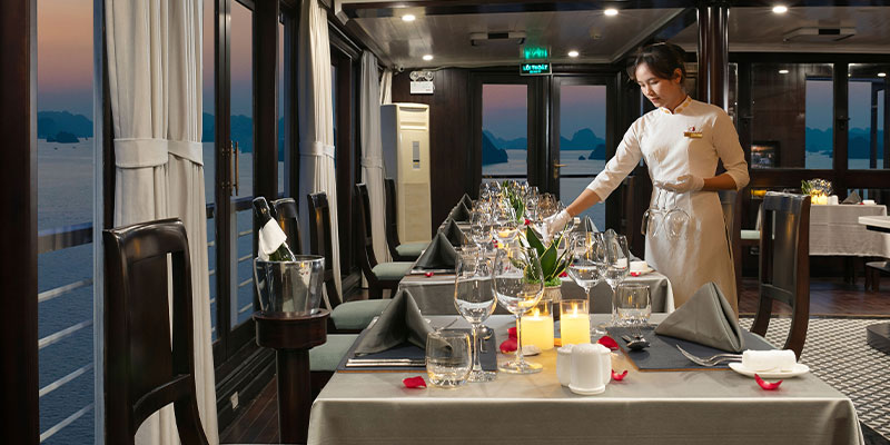 - 19h15: Thưởng thức bữa tối Bữa tối thượng hạng sẽ được phục vụ tại