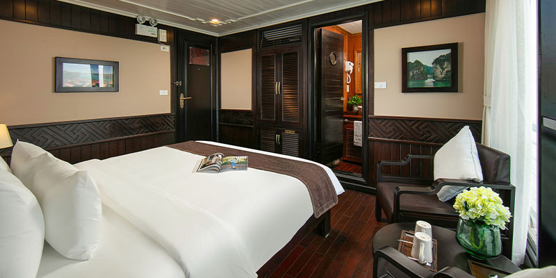 - 09h30: Trả phòng Quý khách tận hưởng những giây phút cuối ngắm nhìn cảnh vịnh trước khi về lại cảng. Đồng thời làm thủ tục trả phòng và thanh toán các khoản phát sinh do nhu cầu cá nhân tại nhà hàng tầng 2. 09h45: Thưởng thức bữa trưa Quý khách dùng bữa trưa tại nhà hàng trước khi kết thúc hải trình.