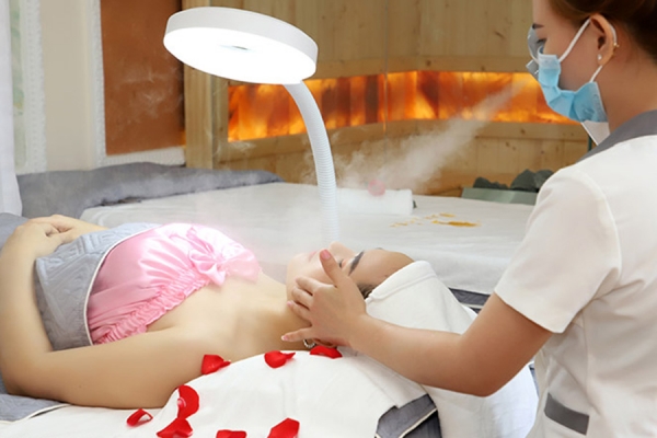 Gói 03: Tẩy tế bào chết, xông hơi, hút dầu, nhờn + Massage mặt + Chạy Vitamin C + Đắp mặt nạ thảo dược làm trắng sáng da, se khít lỗ chân lông + Ánh sáng sinh học + Phun Oxy tươi cấp nước cho da, làm mờ vết thâm sau mụn, giảm nếp nhăn quanh miệng, mắt, đẩy lùi sắc tố sạm nám và tàn nhang cho bạn làn da trắng sáng không tì vết + Massage đầu, cổ, vai, gáy (90 phút).