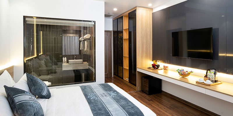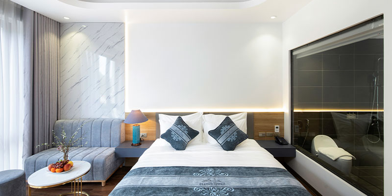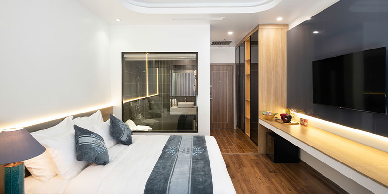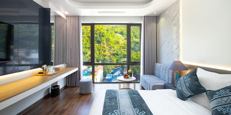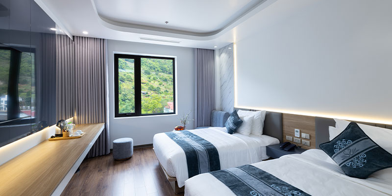 Hạng phòng Deluxe tại Glenda Tower Mộc Châu Hotel là lựa chọn lý tưởng cho những ai đang tìm kiếm một kỳ nghỉ thanh bình nhưng vẫn đậm chất sang trọng. Với diện tích rộng 30m², phòng được thiết kế theo phong cách tân cổ điển lịch lãm, kết hợp giữa gam màu ấm áp và nội thất tinh tế, tạo nên cảm giác vừa hiện đại vừa gần gũi.