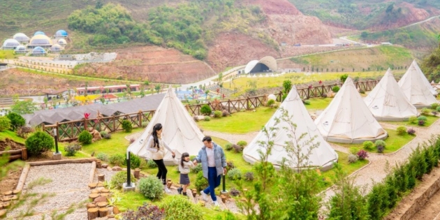 Lấy cảm hứng từ sự trường tồn của thiên nhiên, Mộc Châu Island - Lune Camping được kiến tạo như bức tranh giao hòa giữa quá khứ và hiện tại, giữa văn hoá Tây Bắc và tinh thần hiện đại. Những khu lều trại sang trọng được bao quanh bởi khu vườn xanh mát, hồ bơi vô cực và tầm nhìn hướng núi hùng vĩ mang đến cảm giác yên bình và tự do hiếm có.