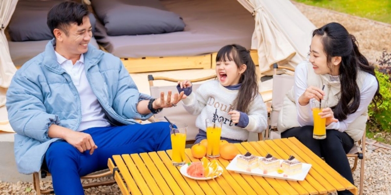 Lều trại sang trọng còn có sân chơi trẻ em, tạo không gian vận động an toàn và vui vẻ cho các bé - một lựa chọn lý tưởng cho gia đình hoặc nhóm nhỏ 04 khách muốn vừa nghỉ dưỡng vừa trải nghiệm.