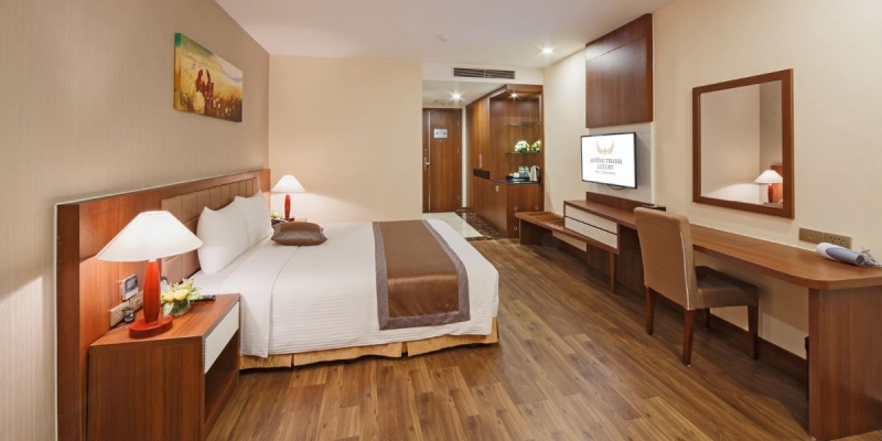 Với diện tích 35m², phòng Deluxe là loại phòng được khách hàng lựa chọn nhiều nhất tại Mường Thanh Holiday Mộc Châu. Không gian được bài trí hiện đại, nội thất trang nhã, có thể bố trí một giường đôi hoặc hai giường đơn, phù hợp cho cả cặp đôi và gia đình nhỏ.