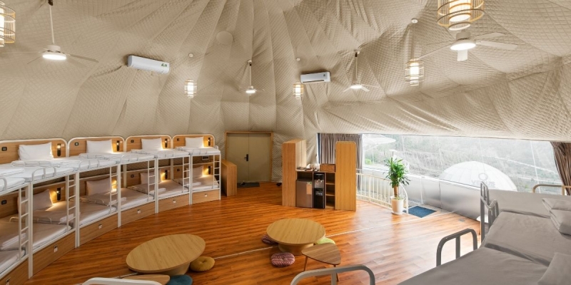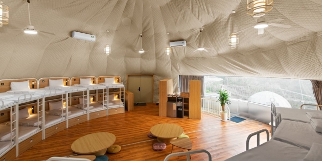 Nebula Glamping lấy cảm hứng từ hệ Mặt Trời, mang đến phong cách nghỉ dưỡng mới mẻ và đầy cảm hứng. Không gian này là lựa chọn lý tưởng cho cả nhóm nhỏ lẫn đoàn lớn với sức chứa lên tới hơn 300 người, đảm bảo sự tiện nghi và hiện đại.