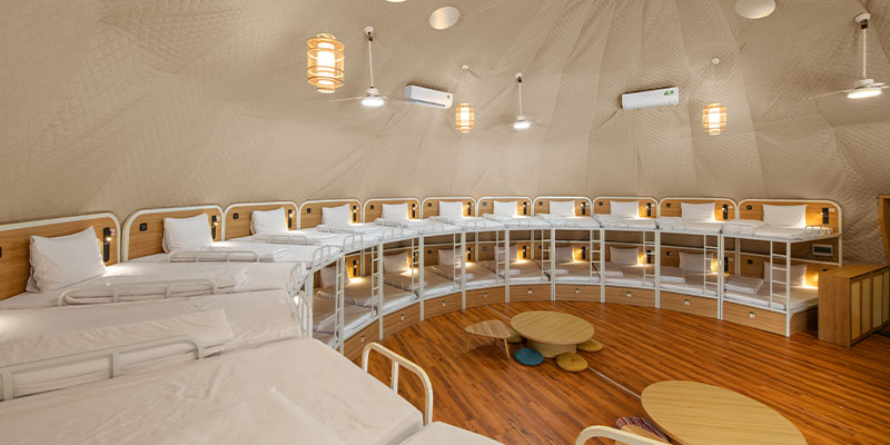 Giữa cao nguyên Mộc Châu xanh mướt quanh năm, nơi những đồi chè nối dài vô tận và làn sương bảng lảng vờn qua triền núi, Nebula Glamping hiện lên như một ốc đảo nghỉ dưỡng độc đáo – nơi con người thực sự được sống chậm, hòa vào thiên nhiên mà vẫn tận hưởng sự sang trọng, tiện nghi. Và trong “vũ trụ” ấy, phòng Uranus và Neptune là hai lựa chọn nổi bật nhất, được thiết kế dành riêng cho những hành trình tập thể, những tập đoàn lớn hoặc các nhóm bạn muốn có một chuyến đi thật đáng nhớ.