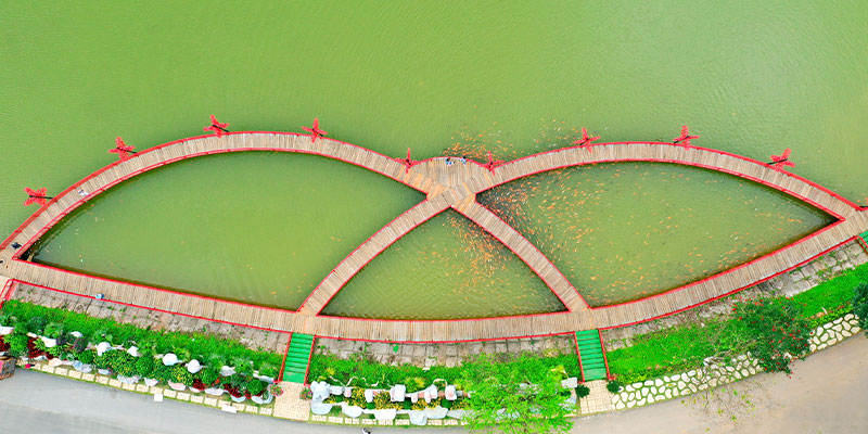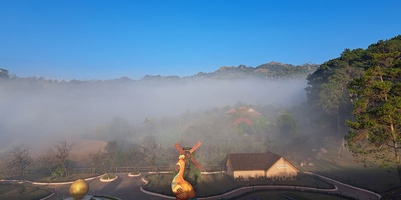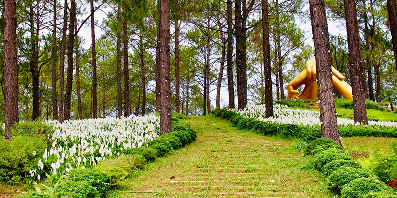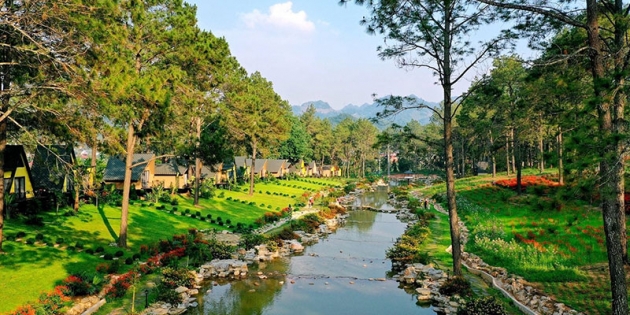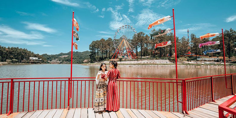 Nơi đây là bức tranh thiên nhiên sống động với hồ nước trong xanh phẳng lặng soi bóng rừng thông, tạo nên khung cảnh nên thơ, tĩnh lặng đến nao lòng. Buổi sớm, sương mờ giăng nhẹ, ánh nắng vàng lấp ló qua từng tán lá – khung cảnh ấy như bước ra từ một bức tranh thủy mặc. Bạn có thể tản bộ, đạp xe quanh hồ, hay chỉ đơn giản là ngồi yên lắng nghe tiếng gió lùa qua rừng thông – một cảm giác thư thái và tĩnh tại hiếm có.