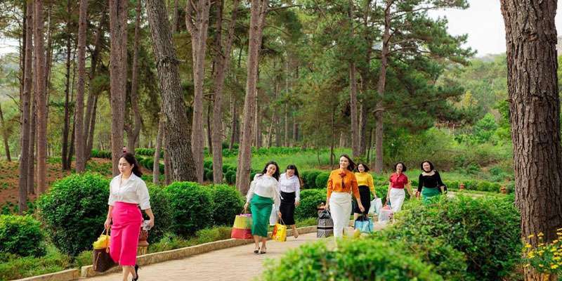 Chuyến nghỉ sẽ thật thiếu sót nếu bạn không dành thời gian dạo chơi Rừng thông Bản Áng, địa điểm du lịch nổi tiếng bậc nhất của cao nguyên Mộc Châu, chỉ cách khu nghỉ dưỡng vài phút di chuyển.