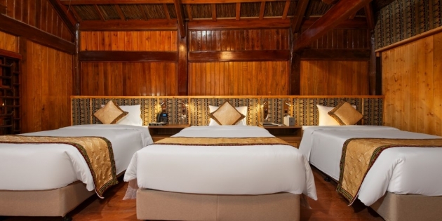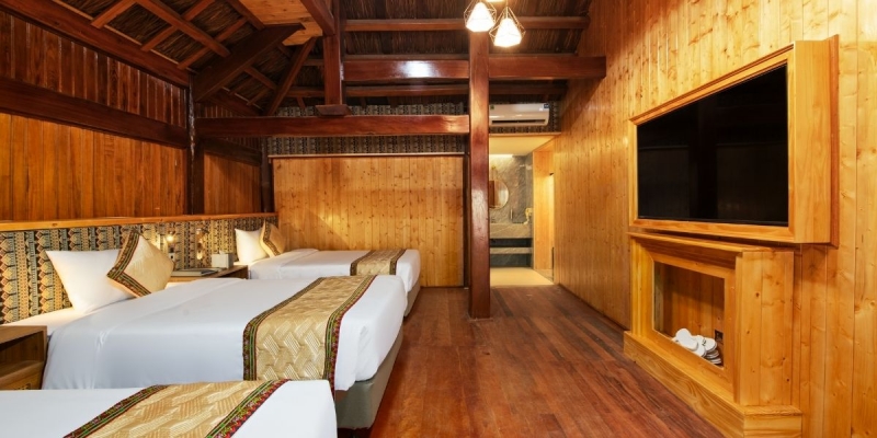Giữa thung lũng Mộc Châu xanh ngát, Thai Village hiện ra như một nét chấm phá độc bản - nơi những nếp nhà sàn dân tộc Thái được tái hiện đầy tinh tế giữa thiên nhiên hùng vĩ. Trong không gian đậm sắc văn hóa ấy, Thái Ethnic House mang đến trải nghiệm nghỉ dưỡng mộc mạc mà sang trọng, nơi mỗi hơi thở đều phảng phất sự bình yên và kết nối. Phòng Thai Quad chính là lựa chọn lý tưởng cho du khách muốn sống chậm, tận hưởng vẻ đẹp nguyên bản của Tây Bắc và cảm nhận hành trình văn hóa trong từng khoảnh khắc lưu trú.