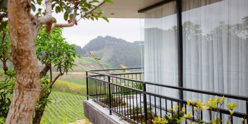Giữa cao nguyên Mộc Châu mờ sương, có một nơi mà chỉ cần kéo nhẹ rèm cửa - thiên nhiên ùa vào căn phòng.