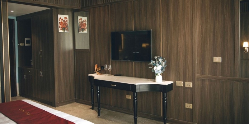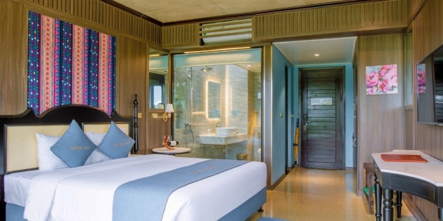 Từng chi tiết trong phòng được chăm chút tỉ mỉ từ ánh sáng tự nhiên, màu gỗ ấm áp cho đến nội thất tiện nghi gồm điều hòa 2 chiều, TV, minibar, trà - cà phê, nước suối miễn phí, mang lại cảm giác thoải mái và thư giãn trọn vẹn.
