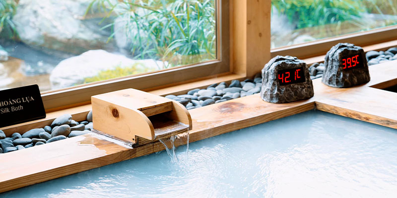 Tại Neo Garden Onsen, mỗi dòng khoáng quý giá được kiểm định nghiêm ngặt theo tiêu chuẩn chuẩn Nhật. Không gian onsen tách biệt nam – nữ với bể khoáng nóng, bể lạnh, bể lụa micro, phòng xông hơi đá muối, khu tắm tráng và bàn trang điểm tiện nghi. Ngâm mình trong dòng khoáng ấm giúp giãn nở mạch máu, cải thiện sức khỏe xương khớp, làm đẹp da, giảm căng thẳng và tái tạo năng lượng.