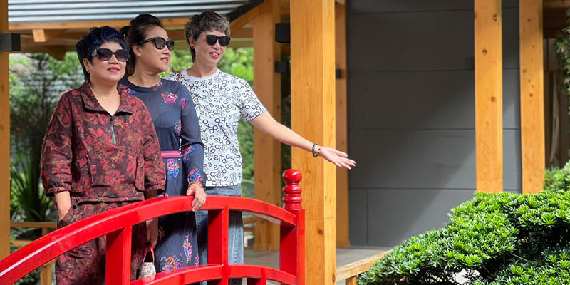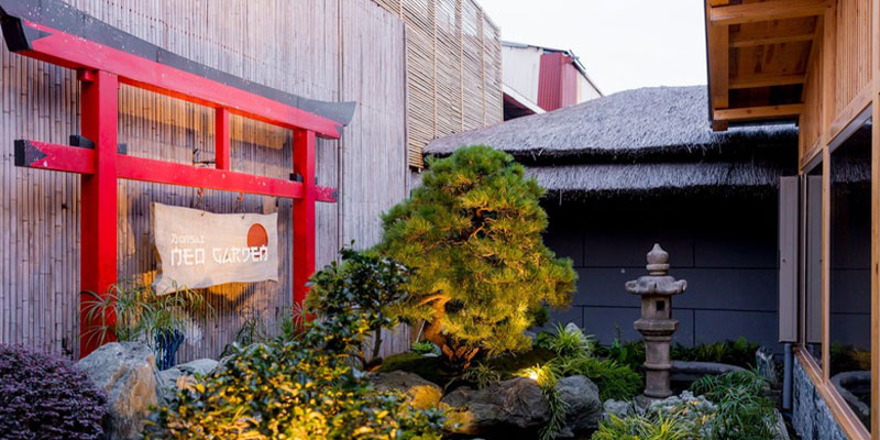 Neo Garden Onsen không chỉ là tổ hợp tắm khoáng nóng chuẩn Nhật, mà còn là “khu vườn nghệ thuật sống” với bonsai quý hiếm như si đồng tán rộng gần 5m, duyên tùng hơn 600 năm tuổi, tùng kim cương, thông đen bám đá… Khuôn viên được thiết kế hài hòa với lối đi lát đá, hồ koi uốn lượn phản chiếu sắc xanh cây lá, tiểu cảnh đá – nước tạo cảm giác thanh tịnh và gần gũi thiên nhiên.