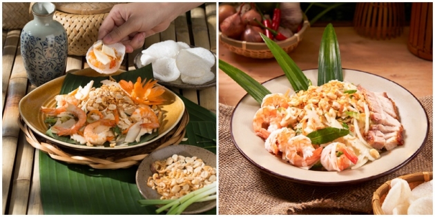Ngay từ món khai vị, Nộm Củ hũ dừa tôm thịt đã đủ khiến vị giác bừng tỉnh. Củ hũ dừa tươi Bến Tre giòn ngọt, hòa quyện cùng tôm sú săn chắc và thịt ba chỉ luộc mềm thơm, tạo nên một bản hòa âm thanh mát – đậm đà – quyến rũ.
