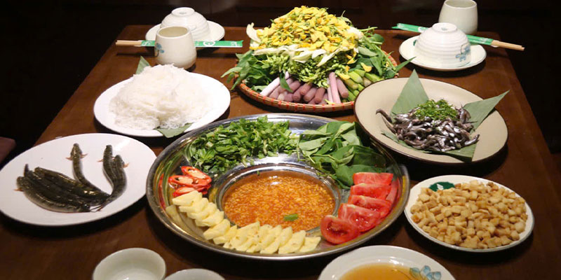 Và khép lại bữa ăn là Lẩu Cá Tầm lá giang (300gr) – món chính làm nên sự cân bằng hoàn hảo. Nước lẩu lá giang chua thanh, nấu cùng cá tầm tươi ngọt, vừa miệng, khiến bữa tiệc trở nên trọn vẹn với sự kết hợp hài hòa giữa vị chua – cay – ngọt.