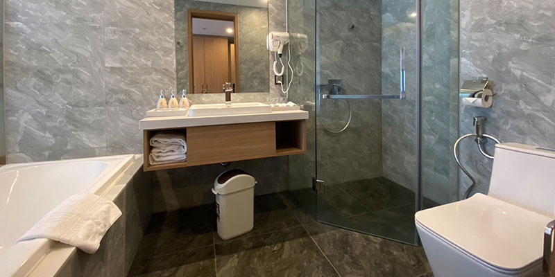 Điểm đặc biệt của hạng phòng này chính là tầm nhìn hướng một phần ra biển – nơi bạn có thể thoáng thấy những con sóng bạc đầu nhấp nhô, nghe tiếng gió biển khẽ ru và cảm nhận hương vị đại dương ngay từ ban công phòng.