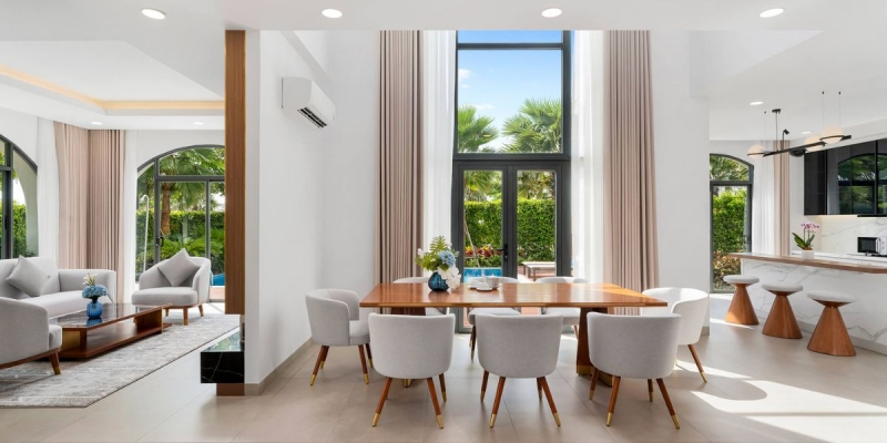Với tổng diện tích lên tới 410m², biệt thự 4 phòng ngủ được bố trí một cách hợp lý giữa không gian sinh hoạt chung và khu nghỉ riêng. Thiết kế hai tầng cùng hồ bơi riêng, khu vực ăn uống ấm cúng cho phép mọi thế hệ trong gia đình cùng gắn kết, tận hưởng những khoảnh khắc đáng nhớ.