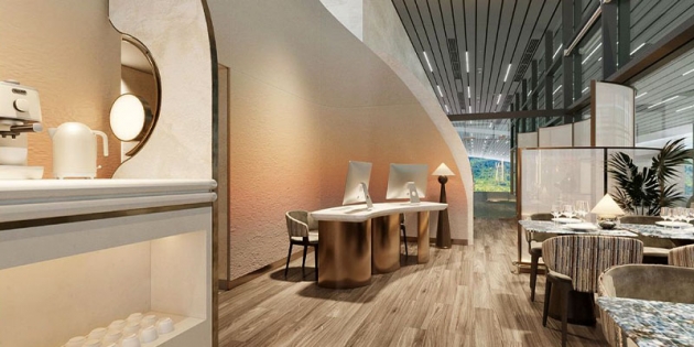 Bước vào The SENS Leisure Lounge, bạn sẽ ngay lập tức cảm nhận hơi thở thiên nhiên lan tỏa trong từng chi tiết. Tông màu sáng nhẹ nhàng, điểm xuyết chất liệu ánh ngọc trai cùng những đường nét mềm mại như sóng vỗ, tái hiện hình ảnh cát vàng – biển xanh – ngọc sáng của Phú Quốc. Mỗi góc nhỏ trong phòng chờ đều được thiết kế tinh tế, mang đến cảm giác thanh thoát, riêng tư và an nhiên tuyệt đối.