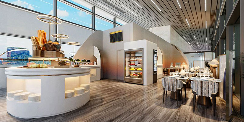 Bên cạnh đó, quầy đồ uống đa dạng phục vụ rượu vang, cocktail, cà phê, trà, nước ép trái cây hay nước ngọt – đáp ứng mọi khẩu vị, giúp bạn tận hưởng trọn vẹn từng phút giây nghỉ ngơi trước chuyến bay.