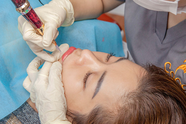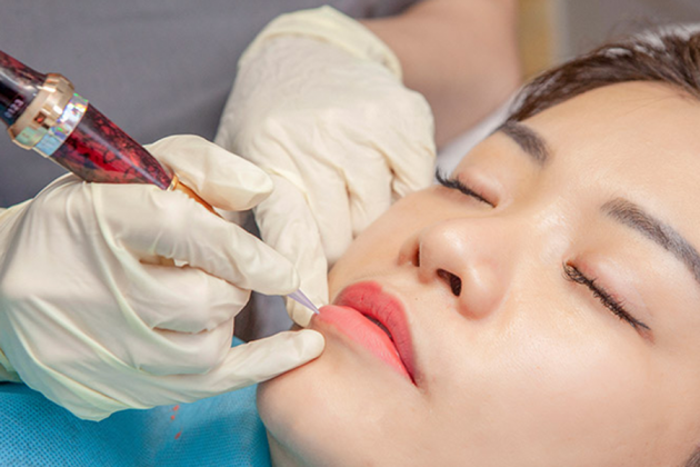 Bước vào quy trình, khách hàng sẽ được các kỹ thuật viên trực tiếp thăm khám và tư vấn lựa chọn màu môi phù hợp với khuôn mặt của từng người. Bước tiếp theo, bạn sẽ được vệ sinh vùng môi và thoa tê, ủ tê. Nếu môi thâm thì chuyên viên sẽ sử dụng màu (để xử lý chuyển sắc tố môi từ thâm trở thành không thâm).