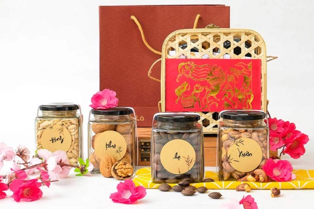 Giỏ quà Tết Bình An của Xanh Lá bao gồm: