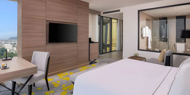 - Tiện ích hiện đại: Bàn làm việc, cổng sạc USB và TV màn hình phẳng tương thích thiết bị thông minh, giúp bạn vừa làm việc vừa giải trí thuận tiện.