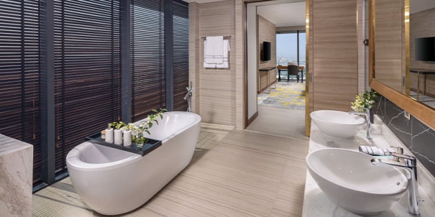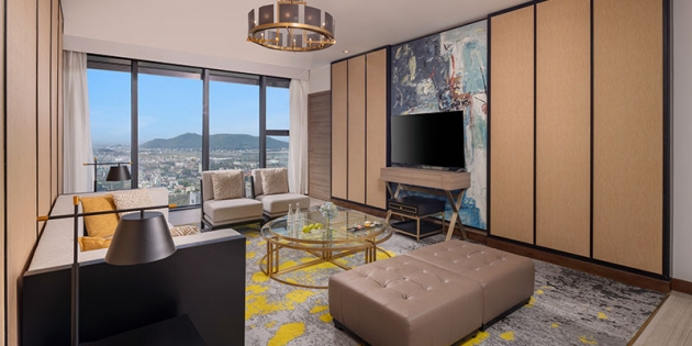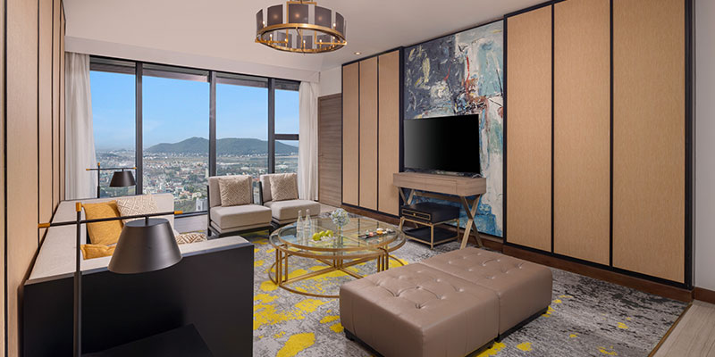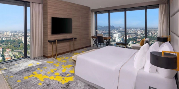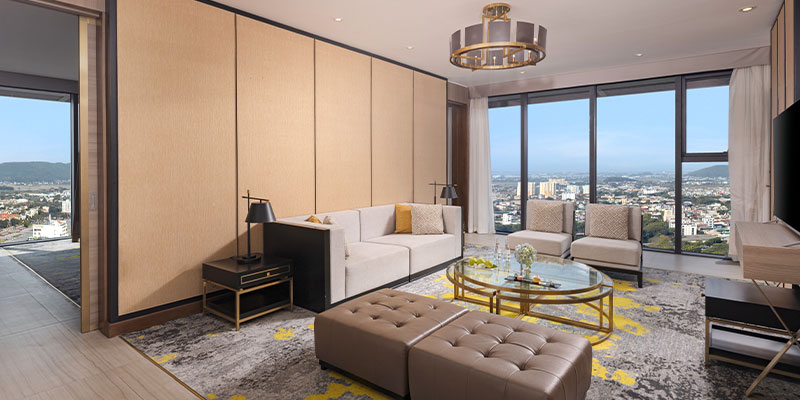 Phòng The Level Suite mang đến trải nghiệm nghỉ dưỡng đỉnh cao với giường cỡ King sang trọng, hệ thống chiếu sáng thông minh, hai TV màn hình phẳng đặt ở phòng khách và phòng ngủ, giúp bạn vừa giải trí vừa thư giãn. Khu vực tiếp khách và làm việc riêng biệt, kết hợp với phòng cách âm, mang đến sự yên tĩnh tối đa.