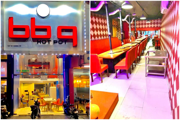Nhà hàng BBQ Hot pot có diện tích 250m2 với sức chứa lên đến 200 khách với view siêu đẹp giữa lòng mặt phố Giảng Võ cùng không gian ấm cúng sang trọng và đội ngũ nhân viên chuyên nghiệp đáp ứng mọi nhu cầu của thực khách khó tính nhất.