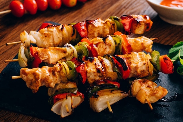 Gà xiên que rau củ áp chảo sốt teriyaki thơm ngon với độ ngọt tươi ngon của ớt chuông, hành tây, thịt gà dai ngon thơm sốt đậm đà hấp dẫn.