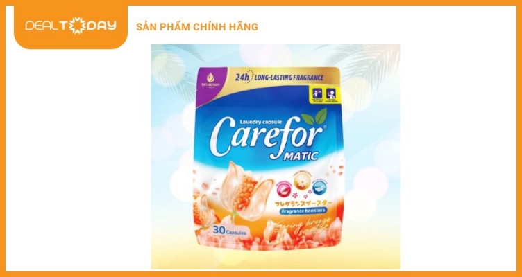 Biến việc giặt giũ trở nên nhẹ nhàng với viên giặt xả Carefor Matic - làm sạch nhanh, dưỡng màu bền vải và lan tỏa hương gió xuân ngọt dịu.