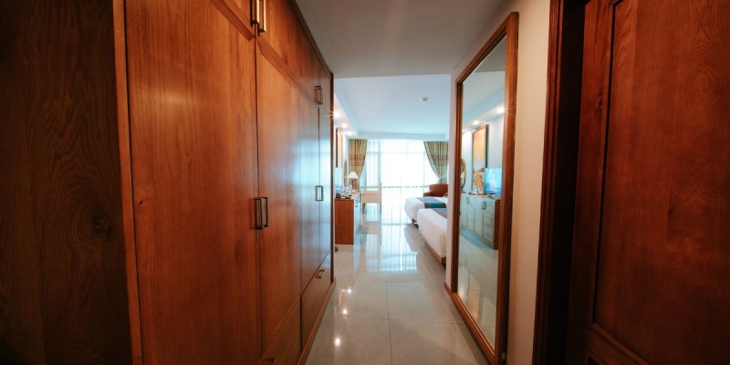 Hạng phòng Triple Sea View rộng 44m², được thiết kế đặc biệt dành cho các gia đình hoặc nhóm bạn đi du lịch cùng nhau. Phòng bố trí một giường đôi cỡ lớn và một giường đơn, phù hợp cho 2-3 khách lưu trú. Không gian rộng rãi, màu sắc nhẹ nhàng và hiện đại, mang lại sự thoải mái và ấm cúng. Cửa sổ lớn đón ánh sáng tự nhiên, mở ra góc nhìn hướng thành phố, tạo bầu không khí dễ chịu sau một ngày dài khám phá biển Vũng Tàu.