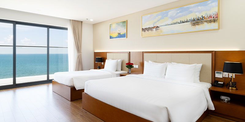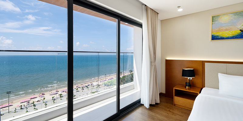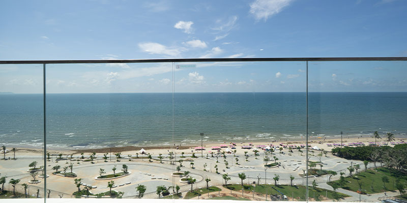 Điểm nhấn ấn tượng nhất chính là ban công hướng biển – nơi cả gia đình có thể cùng nhau ngắm bình minh rực rỡ trên bãi biển Thùy Vân hay lắng nghe tiếng sóng vỗ dịu êm vào buổi tối. Mỗi khoảnh khắc nghỉ ngơi tại đây đều trở thành một kỷ niệm khó quên.