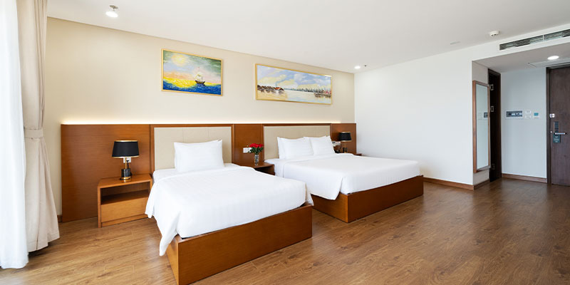 Phòng Victory Family sở hữu diện tích rộng rãi 39m², được thiết kế tinh tế theo phong cách Tân cổ điển sang trọng. Với 2 giường Double Bed thoải mái, căn phòng là lựa chọn hoàn hảo cho những gia đình muốn tận hưởng kỳ nghỉ quây quần mà vẫn đảm bảo sự riêng tư.